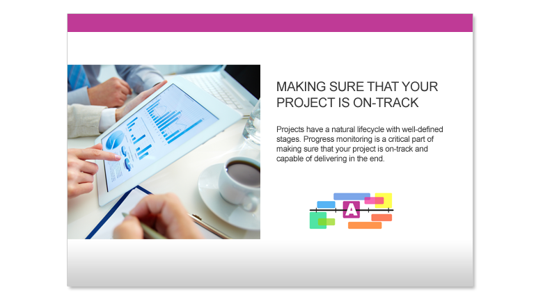 Projects have a natural lifecycle with well-defined stages. Progress monitoring is a critical part of making sure that your project is on-track and capable of delivering in the end.